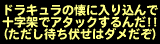 第2の難関は「ドラキュラ」です。 ドラキュラがコウモリから変身して襲ってきます。 ドラキュラに変身した時にこのドラキュラの手前にいると、 血を吸われてしまい、ミスになってしまいますので その場から離れてください。 また、この時にドラキュラの懐に入り込んで [アタックキー]を押すと十字架をかざして ドラキュラに反撃できます! (その場で待ち伏せて撃退する事はできません) |