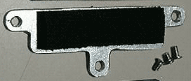 増設メモリを固定する板金はDIYのメッキ金具を手加工でカットして形を整えました。 カットした部分のメッキ処理はありません。 あと、ポケコン本体側の溝に引っ掛ける爪はありませんが1.2mm厚なので、 スポンジを押すには充分な強度のようです。 |